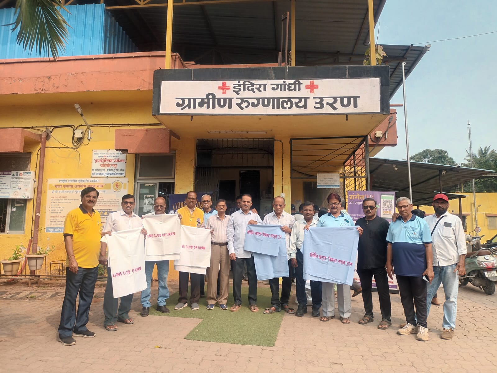 BEDSHEETS AND PILLOW COVERS DISTRIBUTED IN INDIRA GANDHI GRAMIN RUGNALAYA URAN WITH COLABORATION OF MORNING KATTA VIMLA TALAV URAN AND LIONS CLUB OF URAN COMBINELY