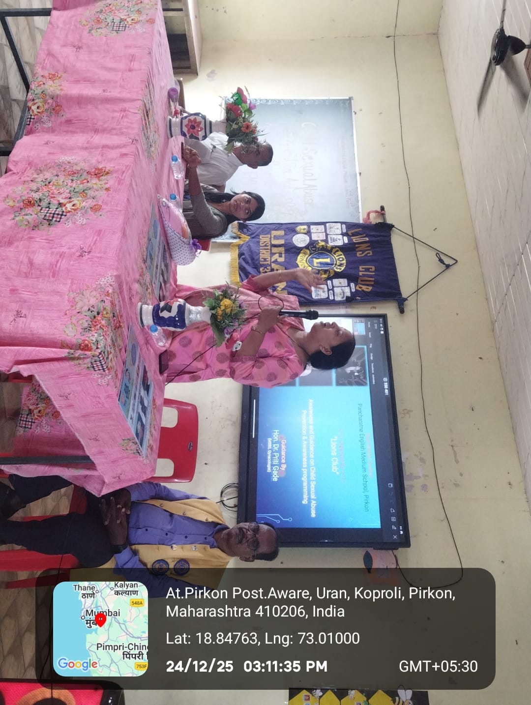 GOOD TOUCH BAD TOUCH SEMINAR (LECTURE) ARRANGED AT PANCHRATNA ENGLISH MEDIUM SCHOOL PIRKON TAL URAN. LECTURE WAS GIVEN BY LION DR PRITI GADE DC HEALTH AND CANCER AWARENESS. CHILD ABUSE POSTER ALSO DISTRIBUTED IN SCHOOL FOR DISPLLAY IN SCHOOL CAMPUS.