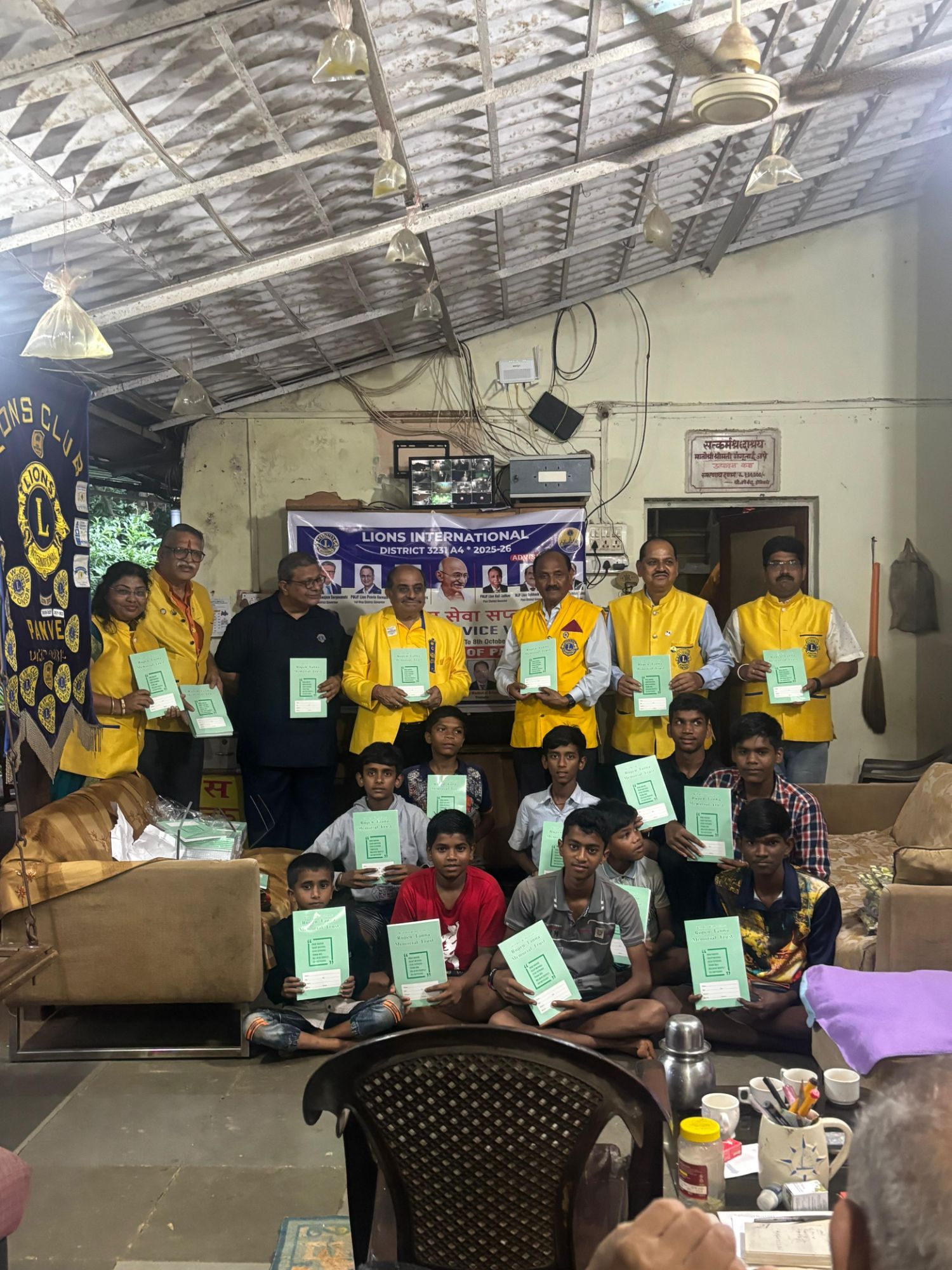 Note Book Distributed at Satkarmshradhyalaya, Dehrang. Notebook Sponcered by 2nd VDg Lion Vijay ganatra.