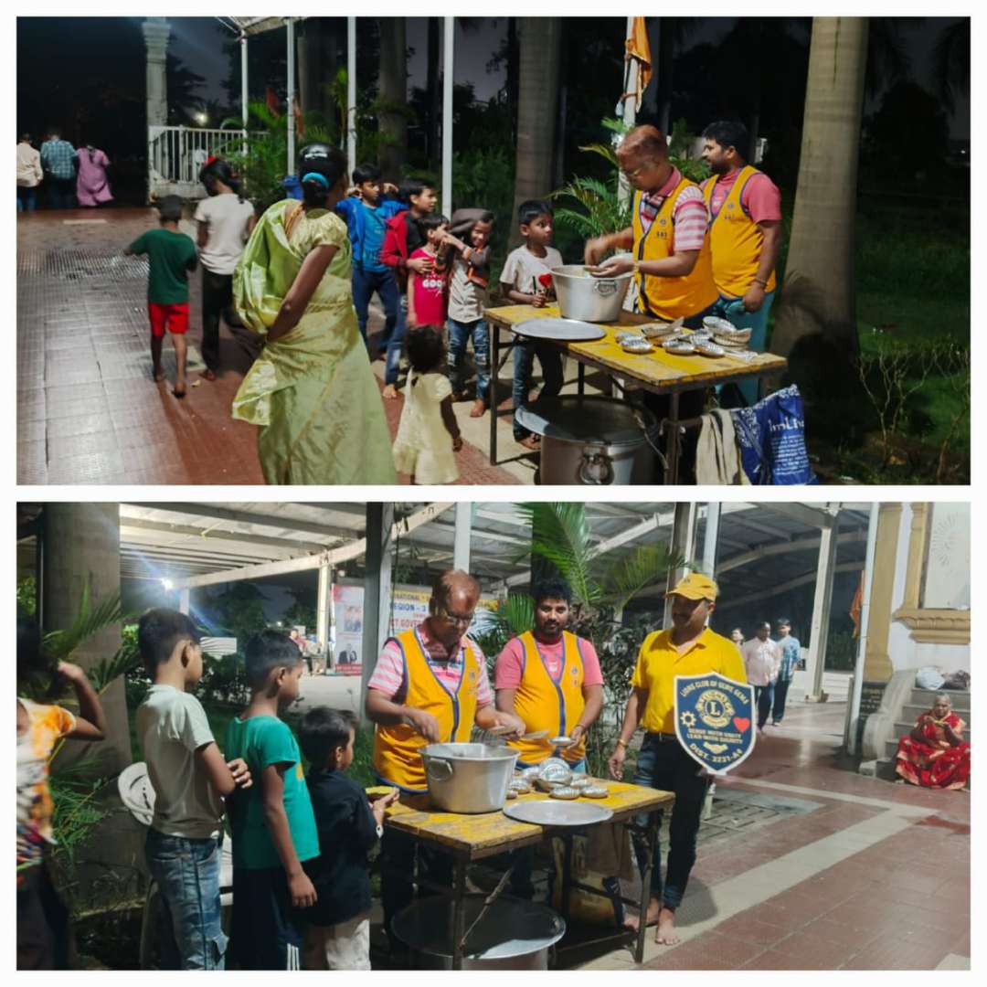 Lions Club of Ulwe Gems – Service Activity Report Project Name: Bhukha Na Rahe Koi Activity Type: Weekly Food Distribution Location: Shree Gorakshnath Mandir, Vahal Date: Every Thursday Objective: To ensure no one goes hungry by providing food to the needy. --- Details of the Activity: Number of Beneficiaries: 550 people Total Cost Incurred: ₹12,000 Lions Members Present: 7 Total Lions Hours: 35 --- Impact: The Lions Club of Ulwe Gems continues to serve the community with dedication by distributing meals every Thursday, ensuring that basic food needs are met for hundreds of underprivileged individuals. This weekly initiative strengthens the club's commitment to fighting hunger and promoting compassion.