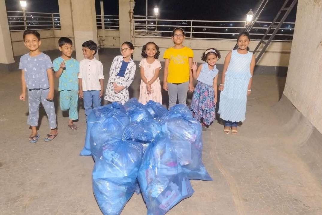 Collection of plastic wastes & donation to recycler.Teaching environmental care tothe children of societies .
