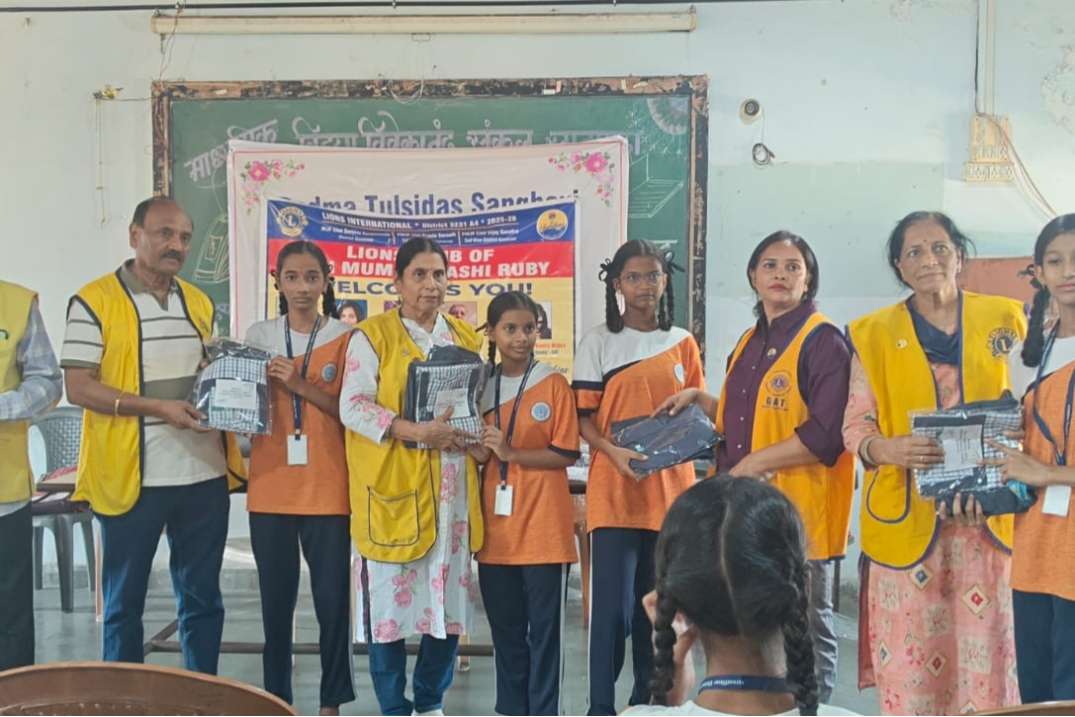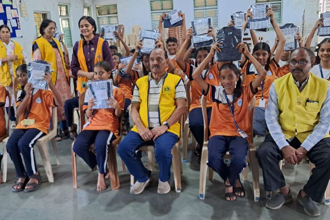 Today distributed new school uniforms to 8th and 9th std. deserving Students Ln. GST Pandayji was chief guest