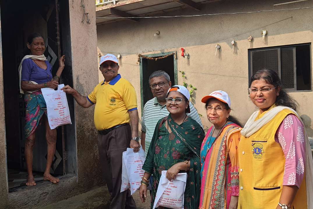 Lions Club Panvel – Diwali Faral Distribution Drive Lions Club of Panvel celebrated the spirit of Diwali by distributing Diwali Faral to the Adivasi communities at Dhodhani and Houshechi Wadi, with the support of Satkarm Shraddhalaya. A total of 125 packets containing chivda, chakli, shankarpale, shev, and other festive delicacies were distributed. The special feature of this activity was that our members personally went door to door to ensure every family received the Diwali treats with warmth and festive cheer. The event was graced by District Governor (Guest) Lion Sanjeev Suryawanshi, Lion Kirti Suryawanshi, 2nd VDG Lion Vijay Ganatra, and Lion Bharati Ganatra.