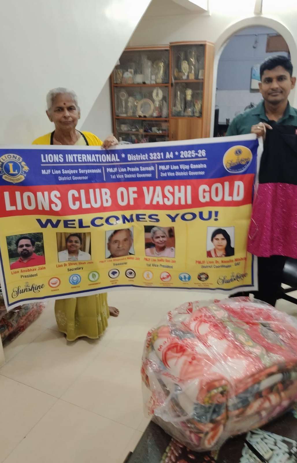 Providing Warmth and Dignity In a heartfelt act of service, 6 needy individuals in Vashi received blankets (6 pcs) and dresses (2 pcs) — bringing them comfort, warmth, and a sense of care. This thoughtful donation reflects the Lions’ enduring commitment to supporting the underprivileged with both compassion and practical aid. 🌟 Special thanks to PMJF Ln. Sudha Rani Jain for her generous heart and tireless service to the community.
