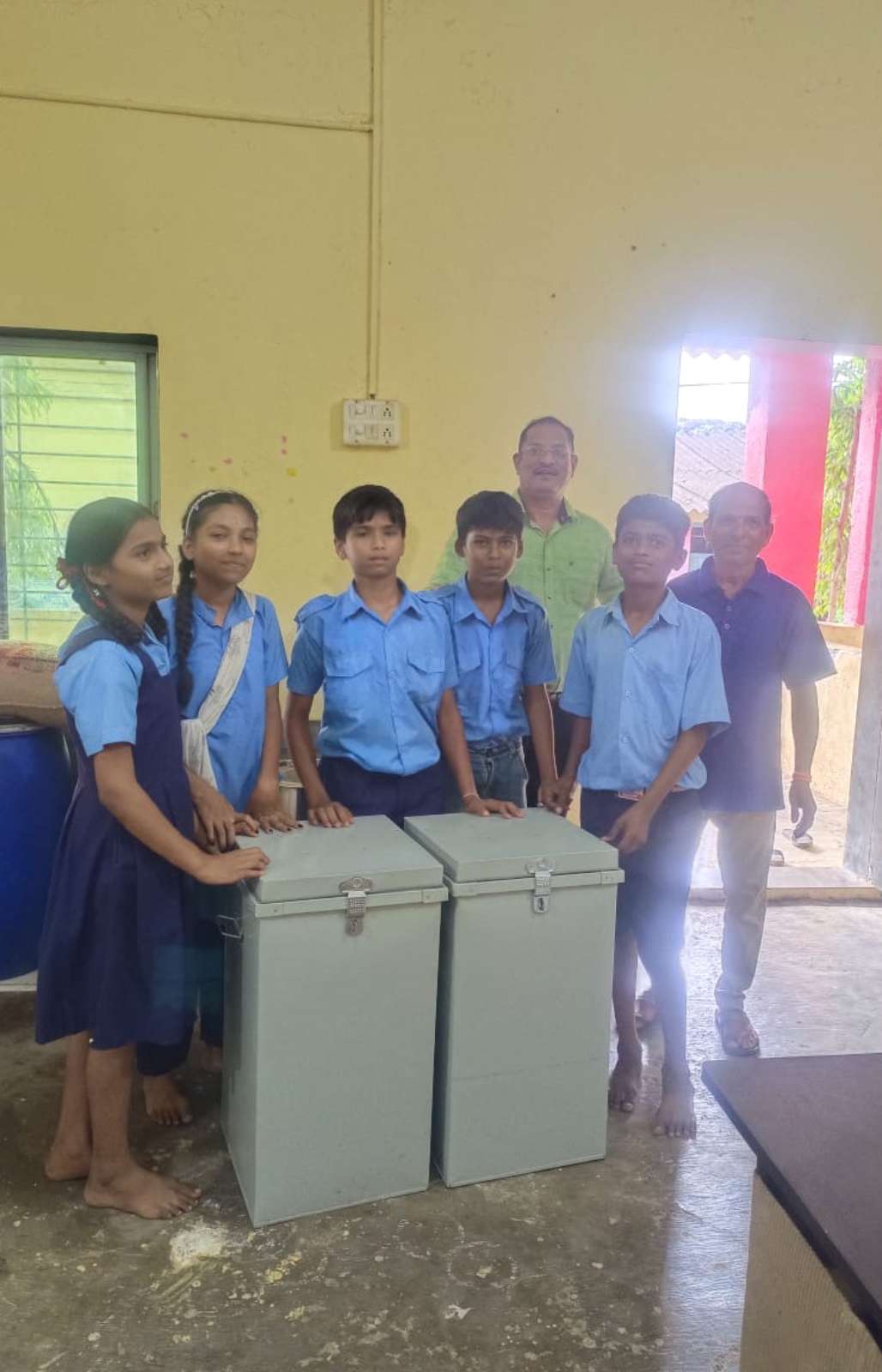 Donated grain storage Tanki and 2 office chairs to Chavane Adivasi school