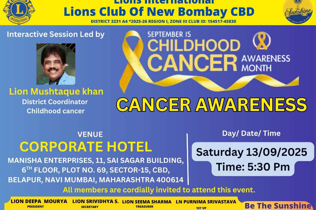 Childhood Cancer awareness session on RC ZC visit day at Corporate Hotel,CBD Belapur