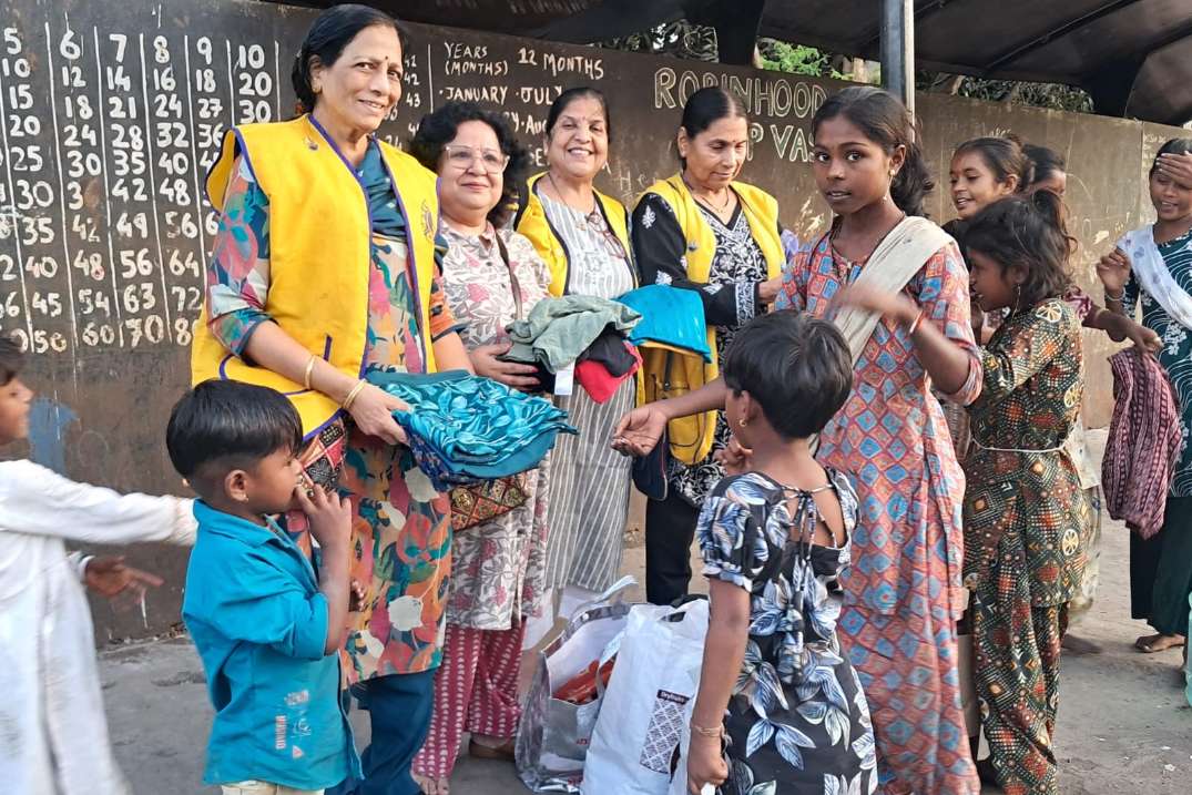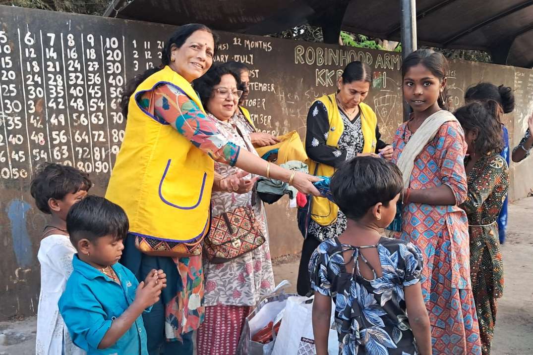 Distribution of clean and old clothes in slums , Vashi