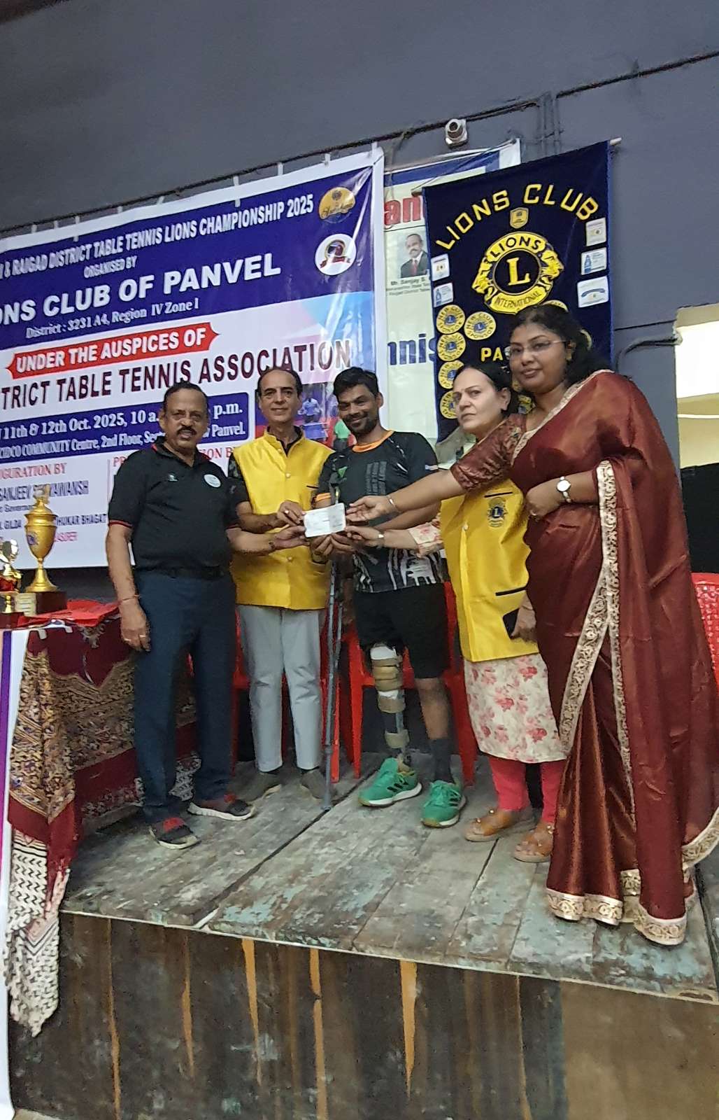 Lions club panvel has sponcered a physically ambled child for international table tennis tournament..