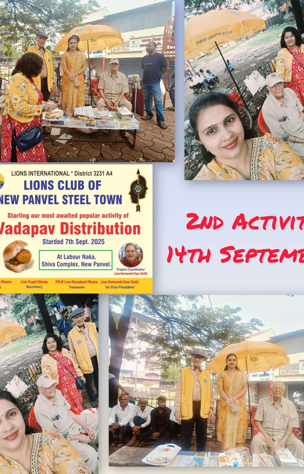 Our club’s signature activity — serving vada pav at a subsidised rate to the needy at Labour Naka, New Panvel 💛