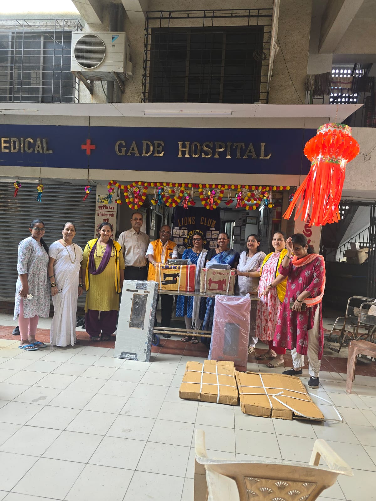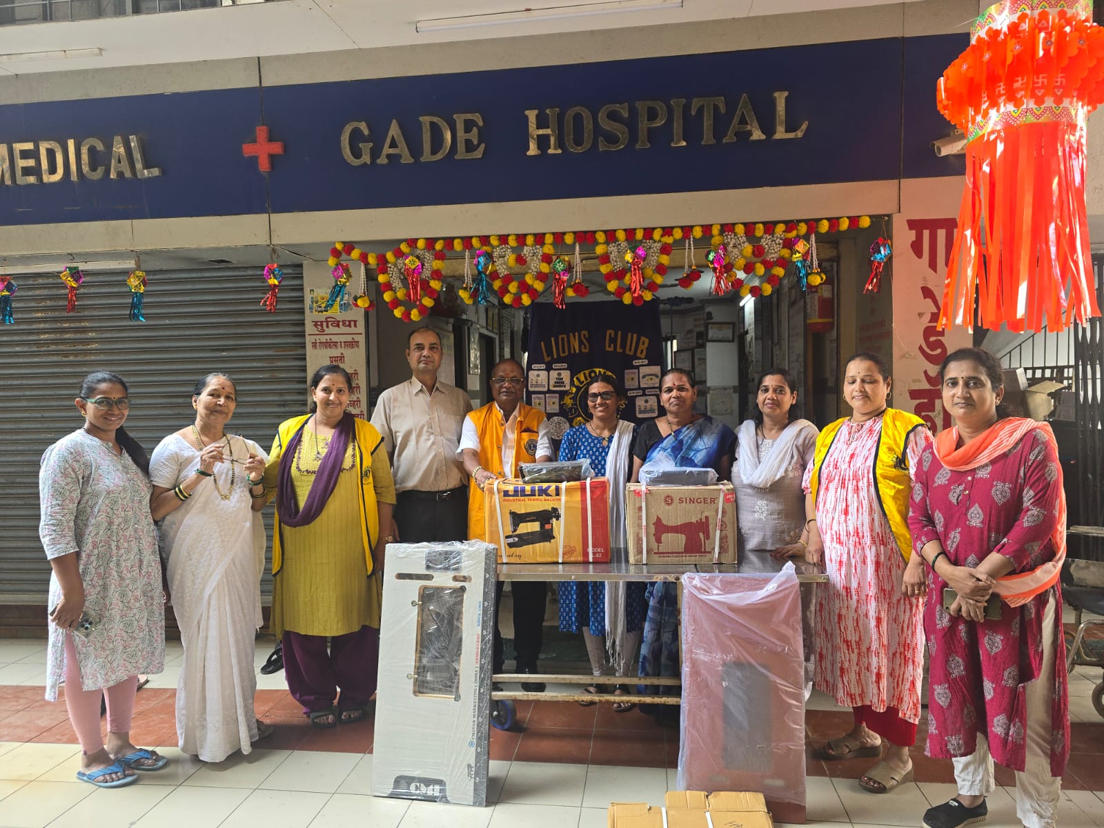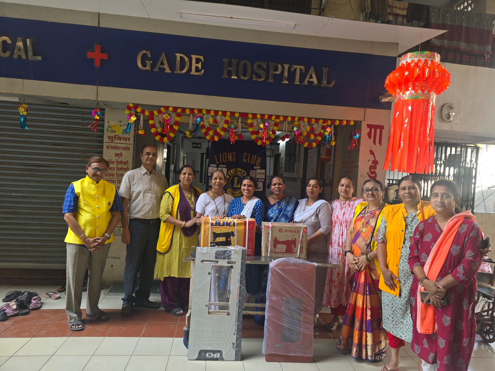 DISTRIBUTION OF HALF SWEAING MACHINES TO NEEDY WOMEN FOR THEIR UPLEAFMENT . LION DR PRITI GADE SPONSORED TW0 MACHINES