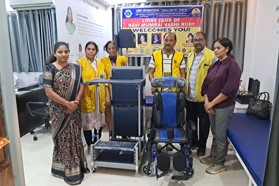 Donation of new wheel chair and examination stand to a Infinity Plus clinic working on specially abled and physically challenged children