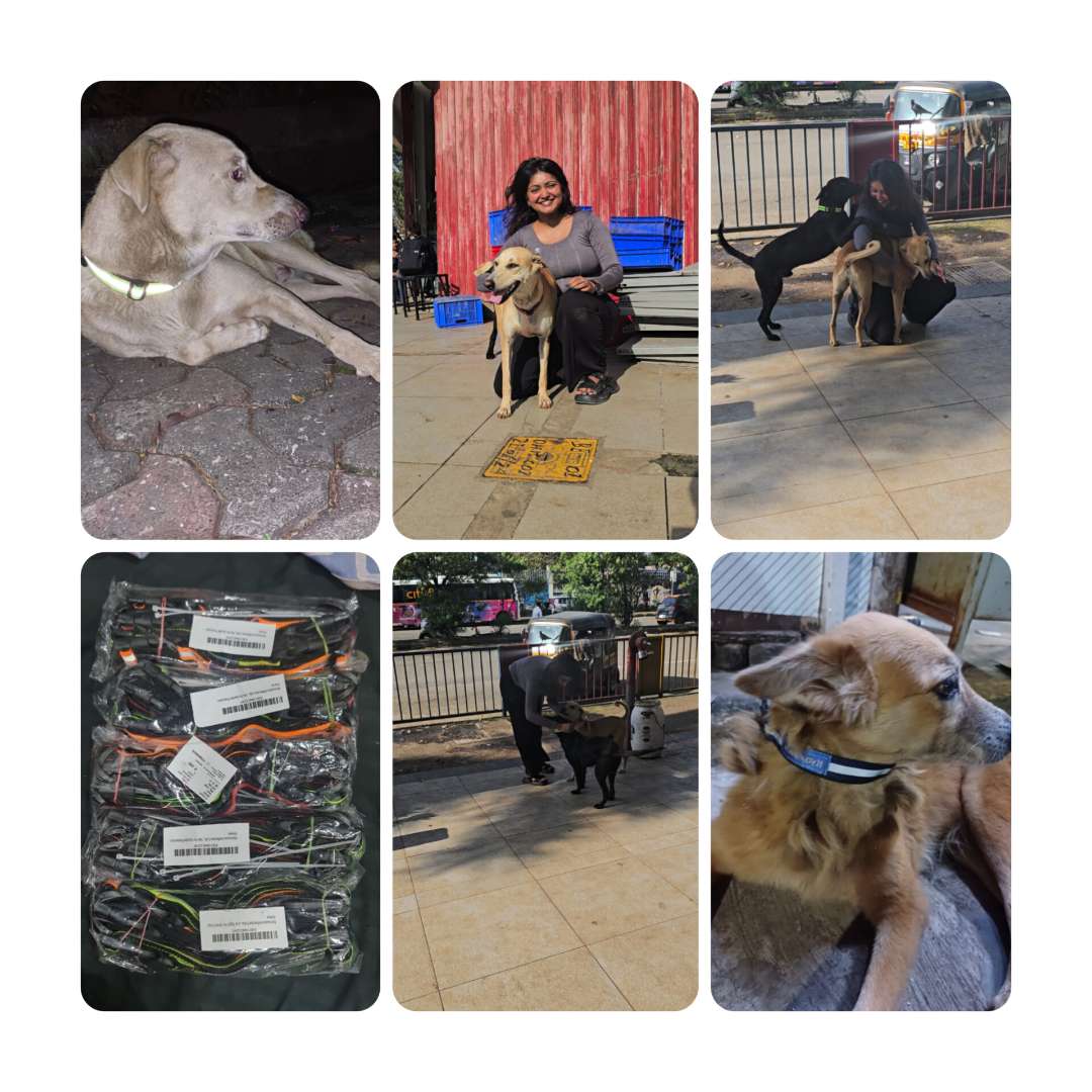 Tying radium belts on dogs to make them visible for vehicles at night. Sponsored and carried out by secretary leo lion Trupti Shinde.