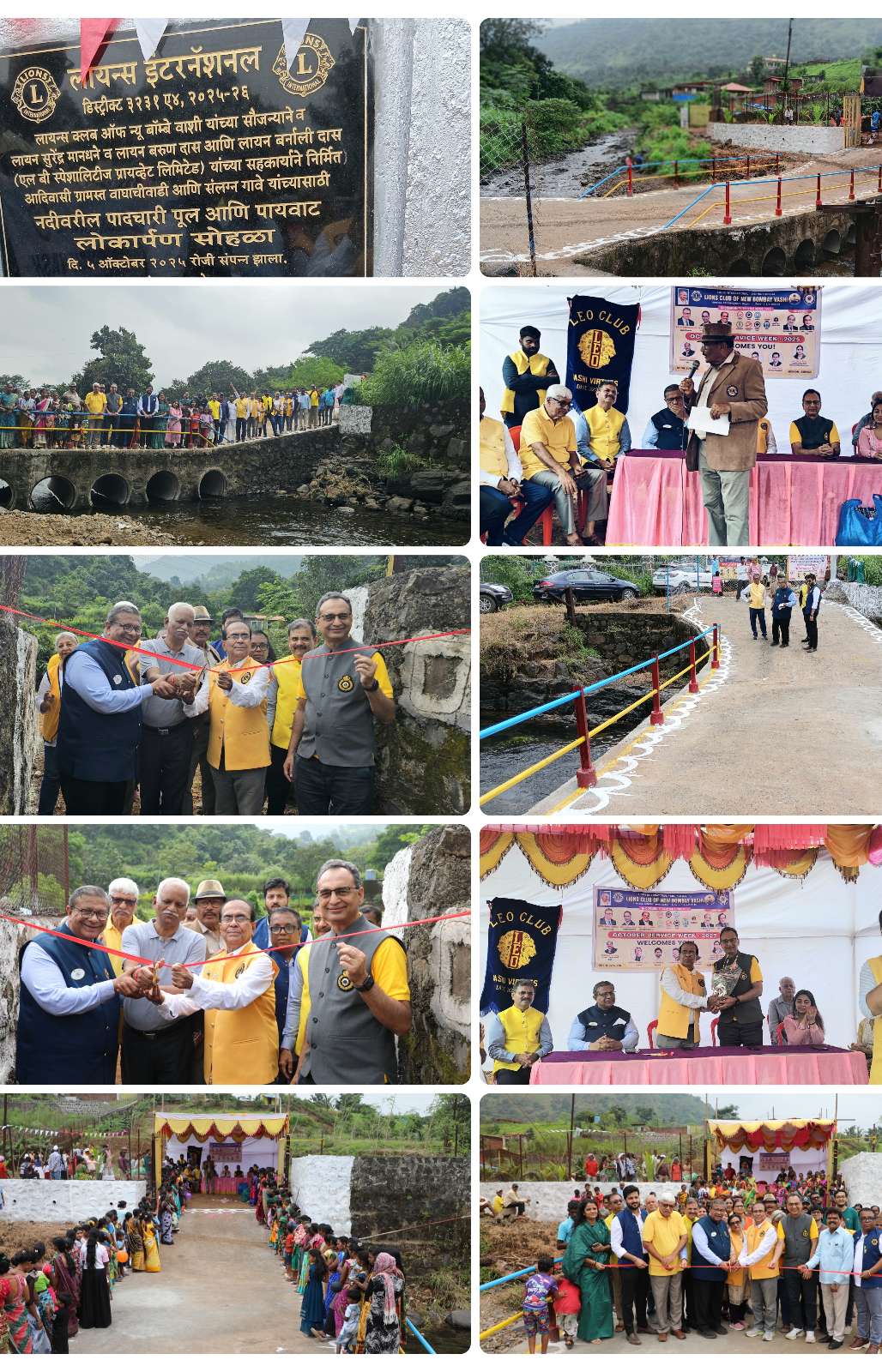 A 15 meter long concrete bridge constructed at Dudhani Adivasi Village which is connected with 4 other Villages, 50KM away from Vashi. This is a dream bridge for the villegers and name of the bridge is kept "Lions Swapna " (villeger's dream/Swapna, fulfilling by Lions "