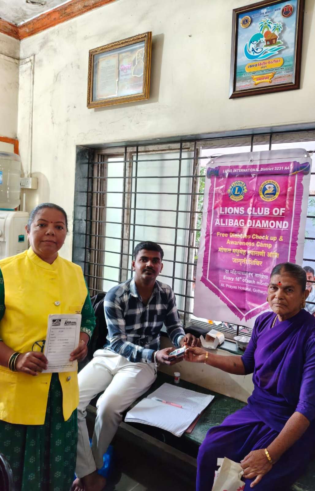 Monthly Diabetes Checkup Camp at Prayas Hospital, Gotheghar Karlekhind Alibag. This camp is for needy people from villages near Alibag. Total 73 patients were checked in the Camp. 2 Lion members attended the camp. This Camp was sponsored by Lion Dr. Rekha Mhatre