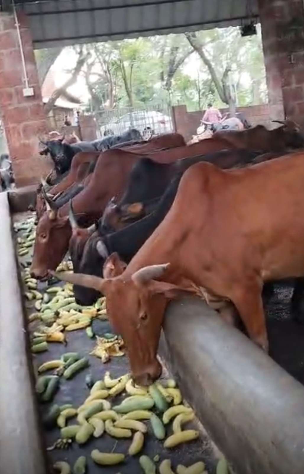 Today on the day of Ekadashi given Banana n cucumber to cows in IIT campus powai
