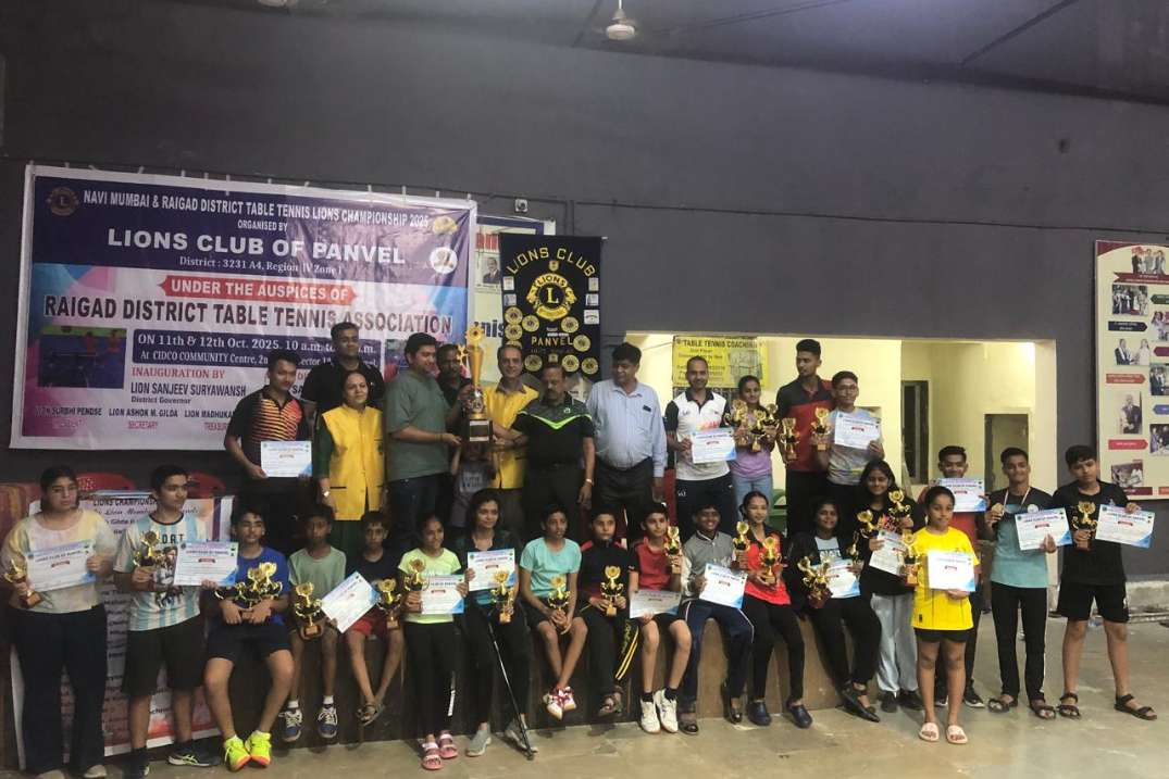 The Raigad District Table Tennis Tournament was successfully organized by Lions Club of Panvel on 11th October 2025, from 10:00 a.m. to 5:00 p.m., under the dynamic leadership of President Lion Surabhi Pendse. A total of 265 players enthusiastically participated in this grand event. The tournament was inaugurated by District Governor Lion Sanjeev Suryawanshi, with 2nd Vice District Governor Lion Vijay Ganatra gracing the occasion as Guest of Honour. Special appreciation to RDCC President Sanjay Kadu (Dada) for his continuous support and contribution towards the success of this tournament. A heartfelt acknowledgment to Project Chairperson Lion Rajendra Jeswani, who has been passionately leading and organizing this tournament for the past 30 years. His dedication and consistent efforts have made this event one of the most reputed and inspiring sports initiatives in the district. Rotating trophy sponcered by Lion Sanjay Potdar