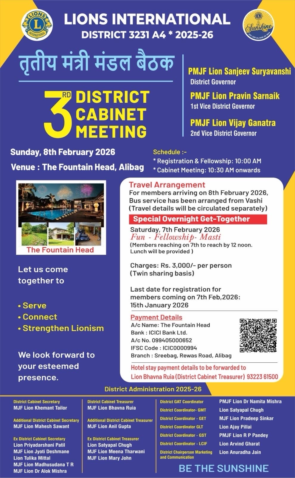 successfully served lunches to all cancer patients staying at Bharat Sevasram Sangha, Sector 31A, Vashi on 25.01.26. sponsor Lion Nutan Mahesh Sawant. Attendence 7