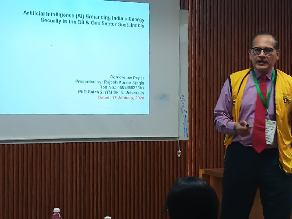 Ln.Rajesh Singla- Secretary, Lions club of Nerul presented a paper on Artificial Intelligence Enhancing India's Energy Security through Oil & Gas Sustainability during the International Conference on AI & Sustainability organized by ITM Kharghar.