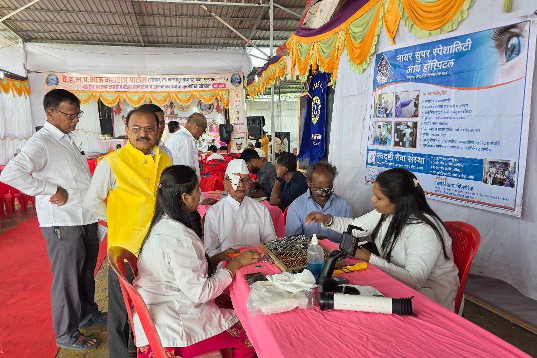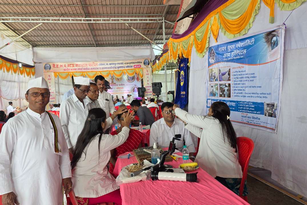 महाआरोग्य शिबीर साजगाव मंदिर डोळे तपासणी व मोफत चस्मे वाटप